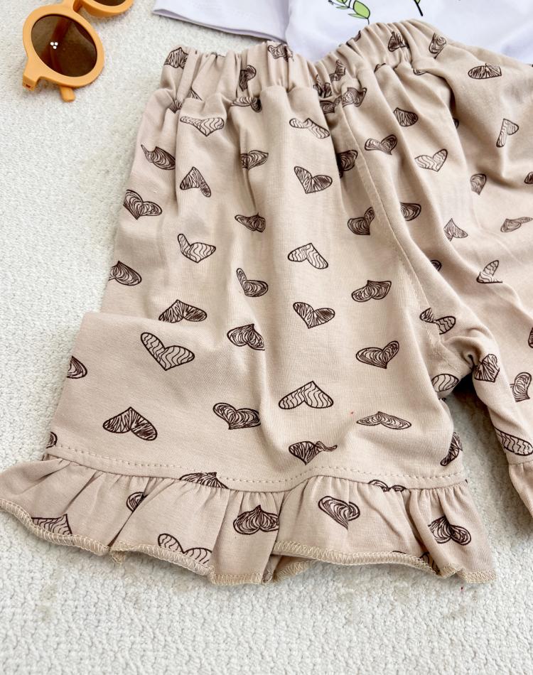 سایز 1 | قد تیشرت : 33 سانتی متر - دور سینه : 56 سانتی متر - قد شلوارک : 30 سانتی متر - دور کمر : 40 سانتی متر و تا 74 سانتی متر کشسانی دارد - دور ران : 42 سانتی متر - فاق : 22 سانتی متر |