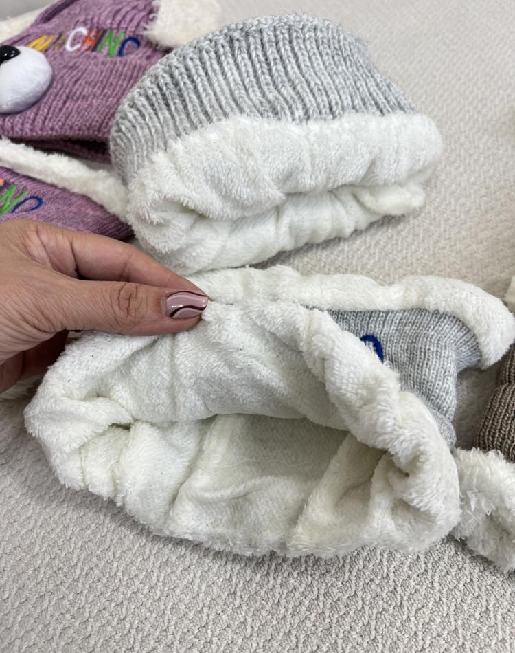 24756 کلاه و شال رینگی خرسیها(4تا8سال)