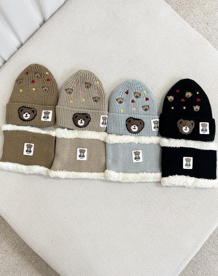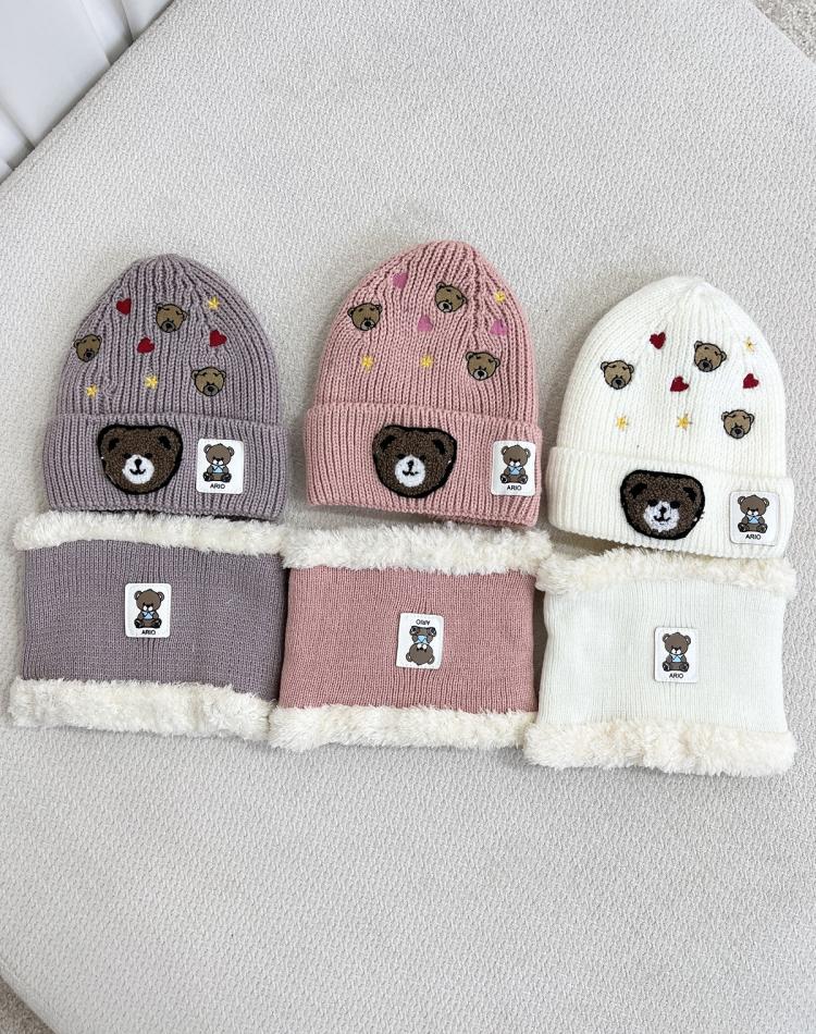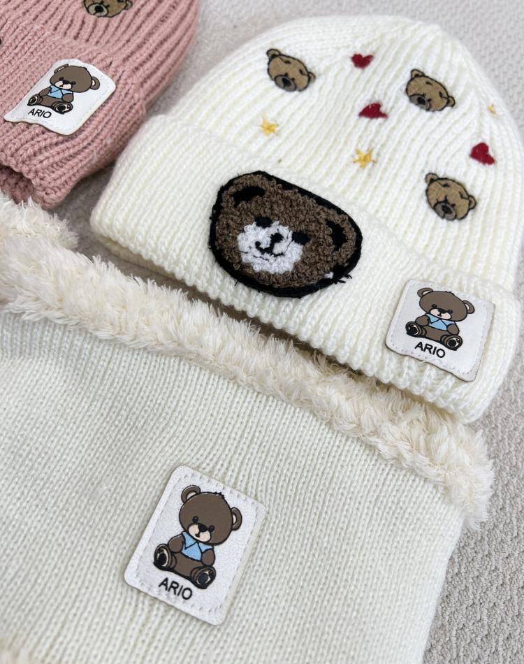 24778 کلاه و شال خرس قلب(3تا6سال)