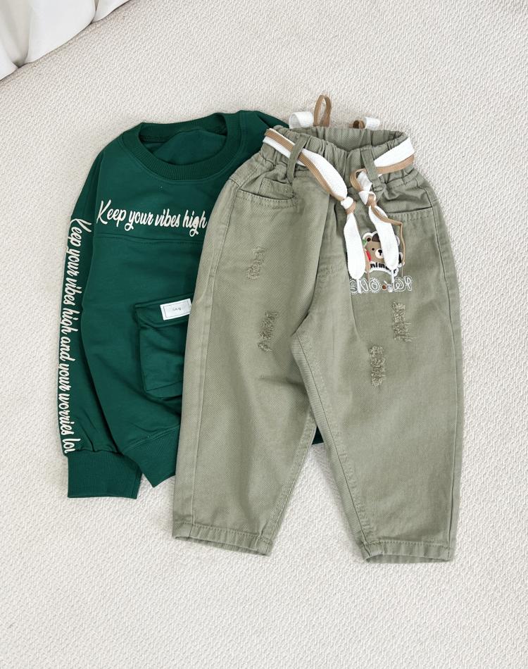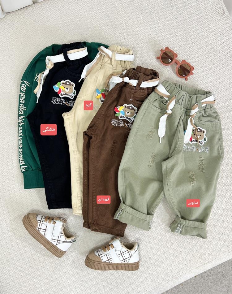 جزئیات : فاقد کشسانی و عروسک روی شلوار چرخشی است